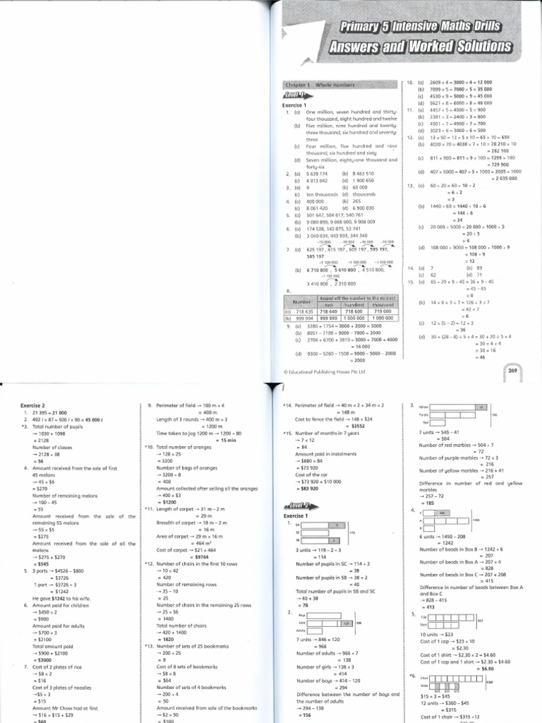 P5 Intensive Maths Drill Answers